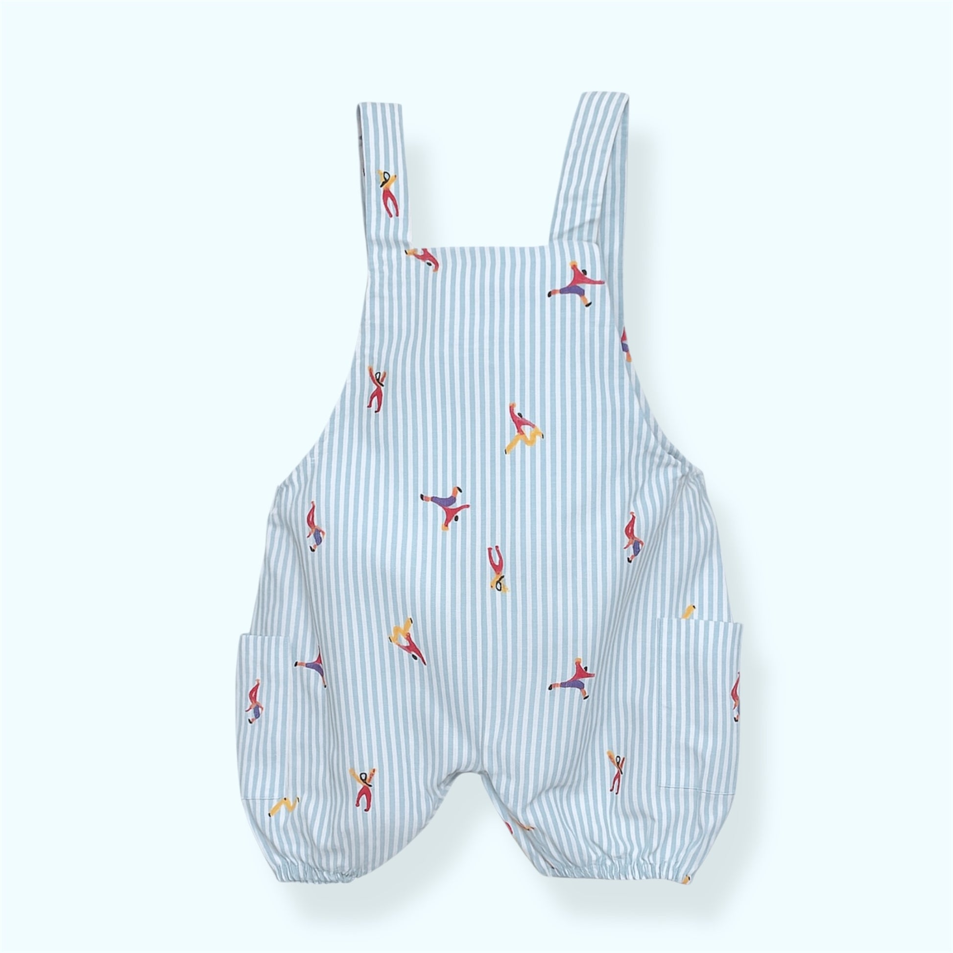 The adjustable knotted straps tie neatly through buttonholes for a flexible, growing fit, while elasticated leg openings ensure a comfy feel. Poppers at the bottom make nappy changes quick and easy, and the two side pockets add a charming, practical touch to complete the look.